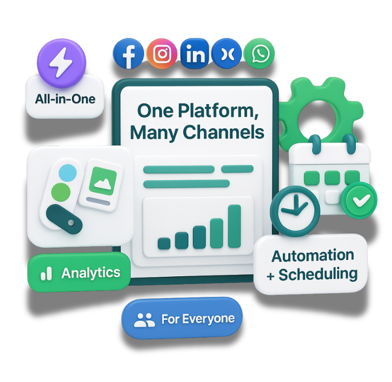 Combines social media management with powerful WhatsApp marketing.